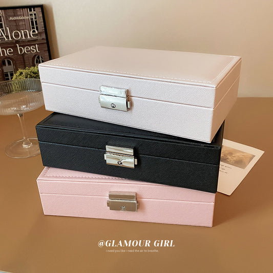 【AQ104】旅行簡約便攜首飾盒高級帶鎖耳環耳環防塵收納盒歐式大容量展示盒 24.09-1