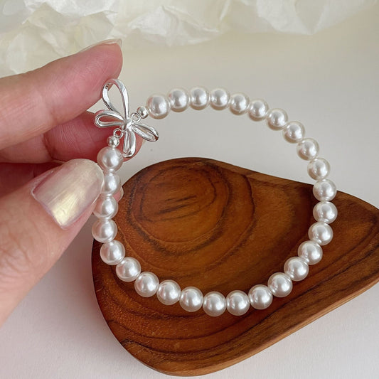 F廠【SB4133】甜美氣質S925純銀正圓仿珍珠蝴蝶結手鍊公主風財閥千金手飾品 25.09-4