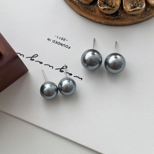 F廠【SE2163】韓版輕奢S925純銀銀灰色仿珍珠耳環正圓高級感小眾氣質耳飾品 25.09-4