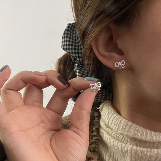 F廠【SE2394】S925銀韓版小眾設計感閃鋯蝴蝶結簡約耳環女韓式時尚個性耳飾 25.05-5