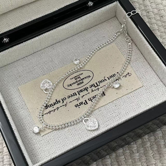 F廠【SB4229】S925純銀輕奢高級感雙排銀珠愛心手鍊女ins風小眾設計感手飾 25.10-1