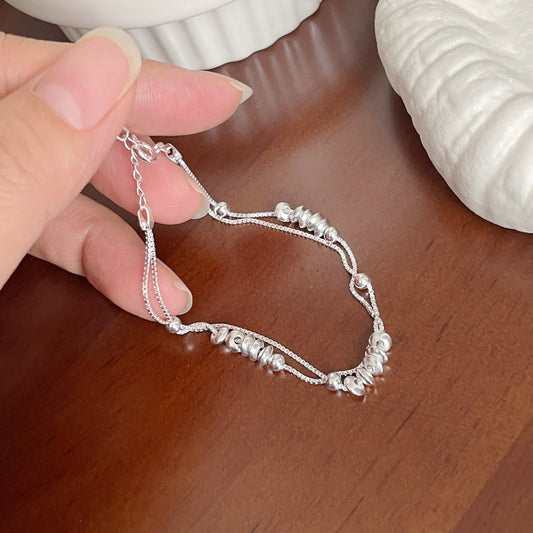 F廠【SB4143】S925純銀韓版小眾雙層飛盤珠手鍊女ins時尚簡約精緻百搭手飾 25.04-2
