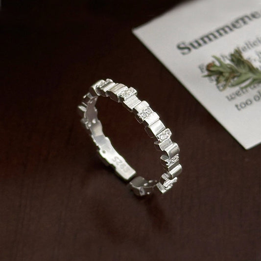 F廠【DQ8967R】S925純銀不規則方塊戒指女輕奢簡約精緻鑲鑽時尚小眾開口指環 25.07-4