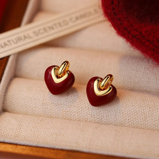F廠【SE2414】S925銀小眾設計感琺瑯愛心耳環女簡約復古時髦氣質耳飾品 25.05-5