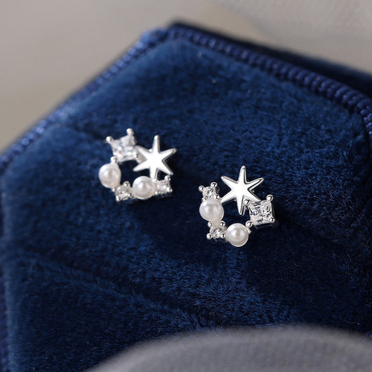 F廠【XDQ11348E】S999純銀簡約氣質六芒星耳環女甜美精緻仿珍珠高級感百搭耳飾 25.11-2