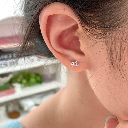 F廠【XDQ11287E】S999純銀小眾精緻四芒星耳環女個性簡約鋯石星芒時尚百搭耳飾 25.11-2