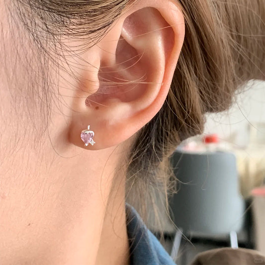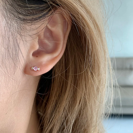 F廠【XDQ11293E】S999純銀迷你粉紅糖果耳環女甜美可愛ins鑲鋯石通勤耳飾品潮 25.11-2