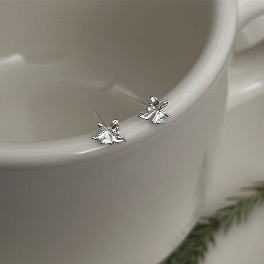 F廠【XDQ10979E】簡約設計感S999純銀小蘭花耳環女ins風迷你葉子百搭疊戴耳飾 25.11-2