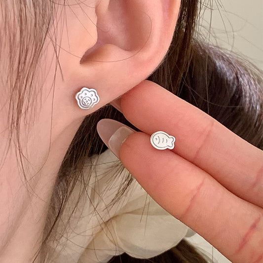 F廠【XDQ10996E】S999純銀簡約貓爪小魚不對稱耳環女甜美可愛日常通勤耳環百搭 25.11-2