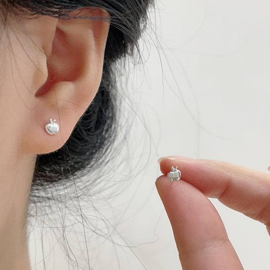 F廠【XDQ11130E】小眾簡約感S999純銀迷你蘋果耳環女簡約創意設計養耳洞耳飾品 25.11-2