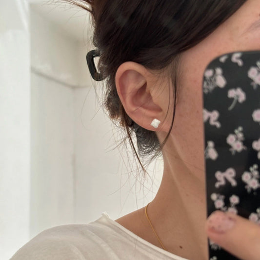 F廠【XDQ11131E】S999純銀ins幾何方塊紋理耳環小眾設計熔岩肌理感百搭耳飾女 25.11-2