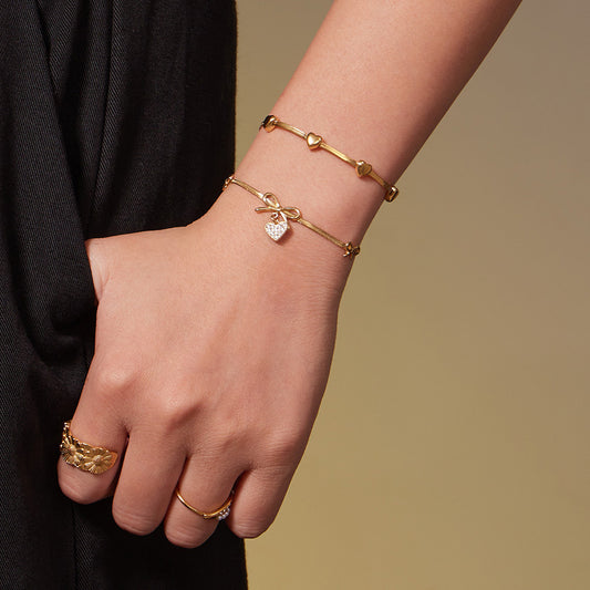 B廠【TXP499】不銹鋼蝴蝶結愛心鋯石滿鑽吊墜刀片鍊手鍊項鍊首飾組鍍18k真金 25.11-4