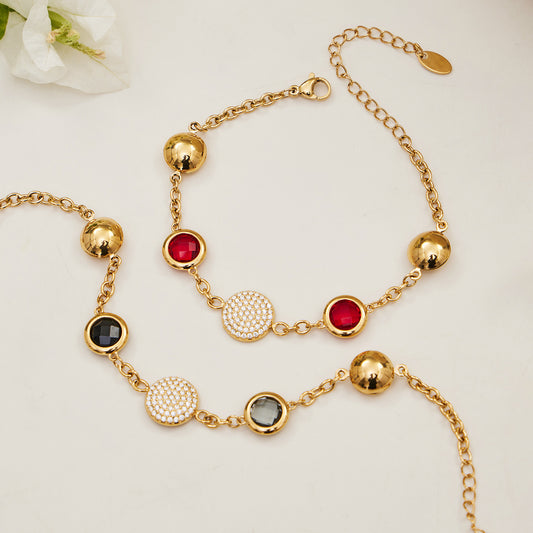 B廠【Z518】不鏽鋼方形彩色玻璃石手鐲ins小眾設計歐美潮酷飾品鍍18k金不掉色 25.12-2