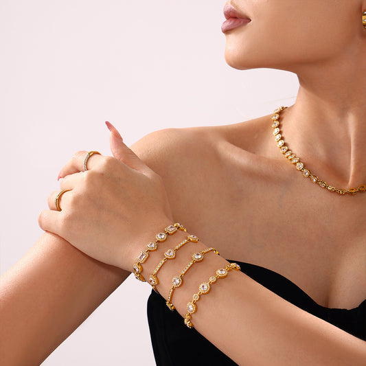 B廠【E569】不鏽鋼幾何超閃鋯石手鍊高版質感手工鑲嵌奢華保色首飾組合 24.12-2
