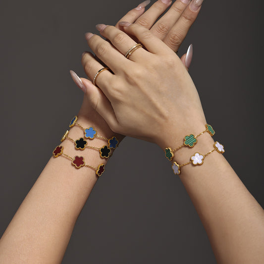 B廠【E568】 多色瑪瑙五葉花不銹鋼手鍊輕奢氣質花朵鏈條手飾 24.11-2
