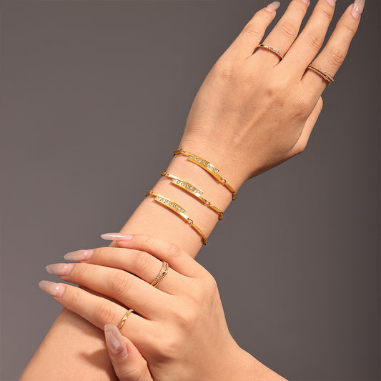 B廠【E565】 歐美簡約棍子鍊黏鑽手鍊不鏽鋼鍍18K真金手飾品 24.11-2