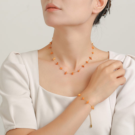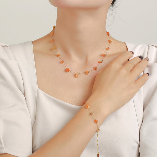 B廠【P116】INS風小眾不規則天然碎石鎖骨項鍊氣質手鍊不鏽鋼糖果色飾品套裝 24.09-2