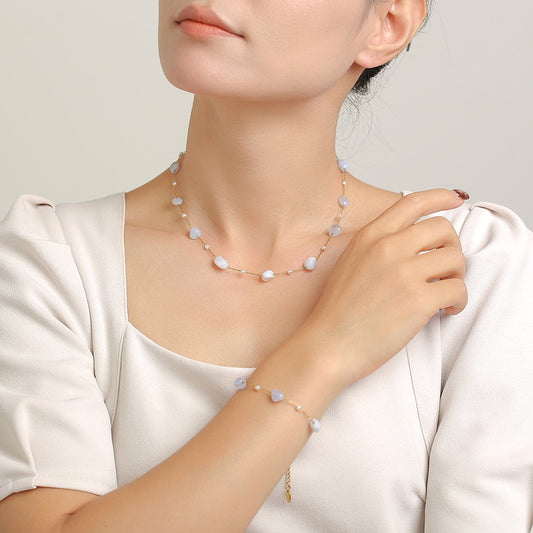 B廠【P115】跨境新款法式復古簡約天然石手工項鍊手鍊小眾設計不銹鋼套裝飾品 24.09-2