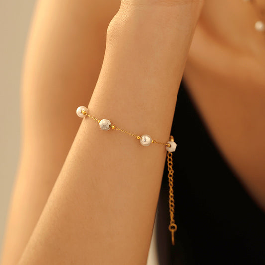 B廠【P126】歐美跨國天然石仿珍珠鎖骨項鍊氣質手鍊ins風小眾不鏽鋼女裝 24.09-3