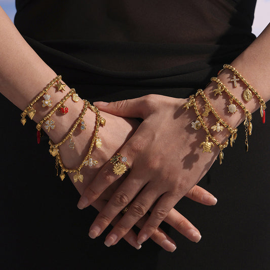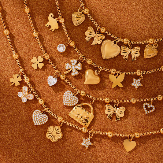 B廠【E620】INS輕奢風不鏽鋼愛心DIY多配件吊墜手鍊女鍍18k真金不掉色 25.05-5