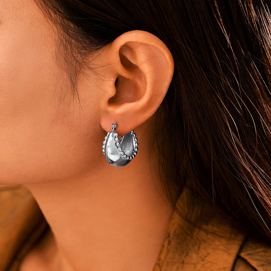 B廠【F1656】飾品ins風空心鋼珠時髦C型耳環不鏽鋼鍍18K金保色氣質耳飾 24.10-4