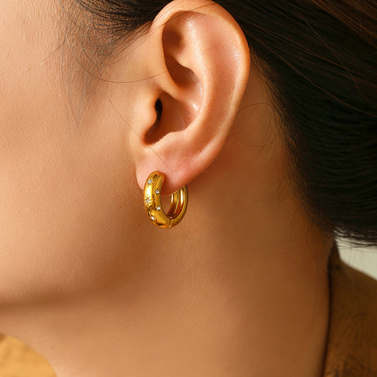 B廠【F1613】跨國新款素圈鑲鋯石耳環不掉色鈦鋼PVD鍍金小眾設計圓形耳環飾品 24.08-5