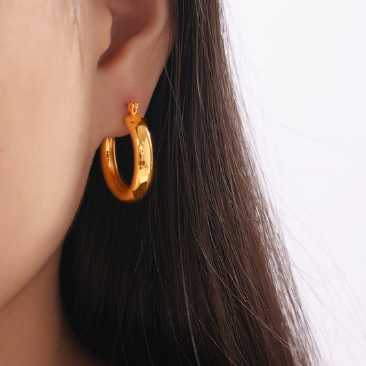 B廠【F373】歐美ins風小眾幾何空心素圈耳環輕奢感女銅材質鍍金簡約百搭耳環 24.07-4