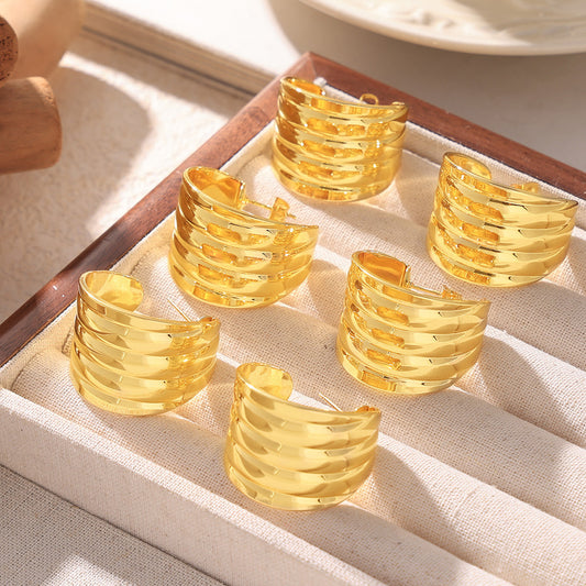 B廠【F979】歐美ins風不規則圓圈光面耳環小眾誇張設計銅材質鍍18k金復古耳環 24.07-4