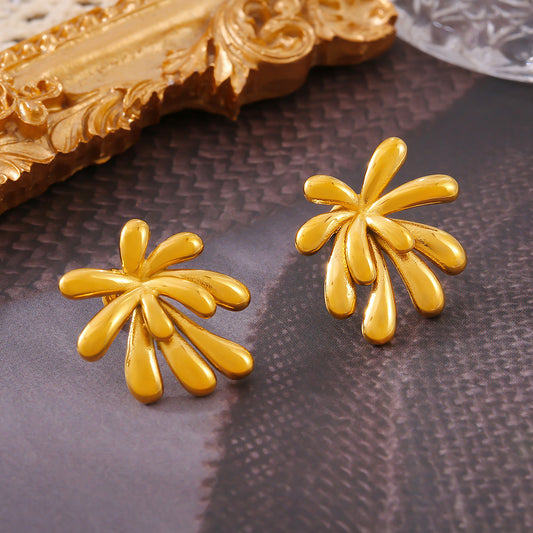B廠【F1086】歐美chic風不規則煙火造型耳環創意時尚設計鈦鋼鍍18k金飾品 24.07-4