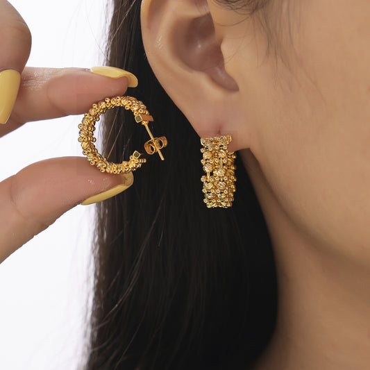 B廠【F1570】歐美簡約月亮編織不規則C型耳環復古鏤空設計銅材質鍍18k金飾品女 24.07-4