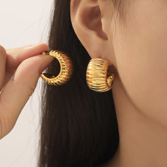 B廠【F202】跨境鏤空條紋氣質耳環鈦鋼鍍18K真金C形不掉色簡約輕奢耳飾女 24.07-2