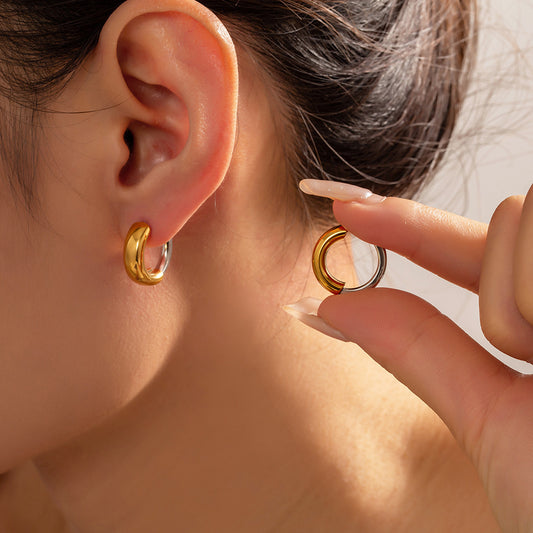 B廠【F105】韓國跨國復古圓拼接氣質耳環鈦鋼鍍18k真金素圈個性小眾耳飾女 24.07-2