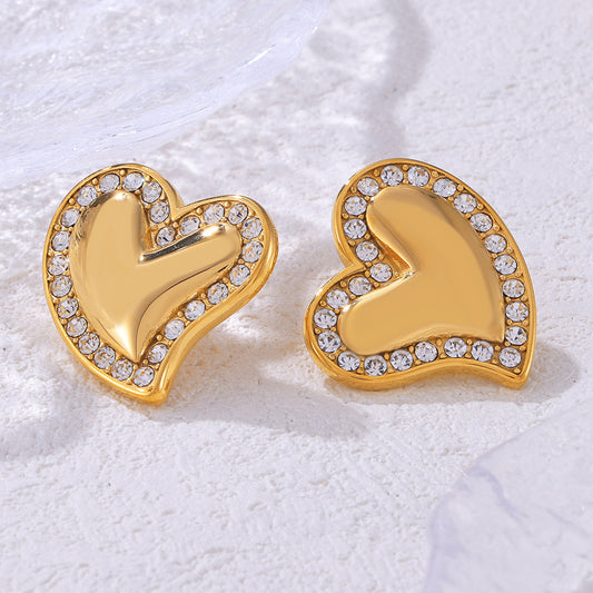 B廠【F204】歐美跨境桃心耳環鈦鋼鍍18k真金鑲鑽百搭耳環女時尚輕奢飾品 24.07-2
