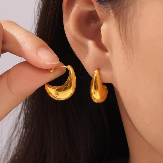 B廠【F423】跨境ins風空心月牙狀耳環歐美輕奢氣質復古風鈦鋼鍍18k真金耳飾女 24.07-3