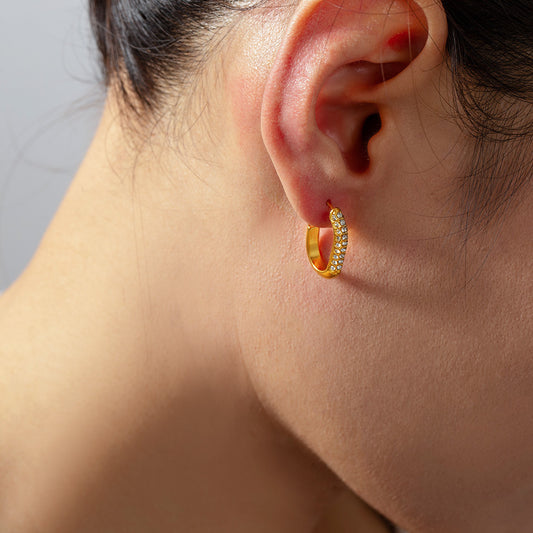 B廠【F1493】熱銷歐美風金色鑲鑽C型耳環鈦鋼鍍18k金輕奢時尚高級感耳飾 24.07-3
