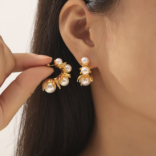 B廠【F191】跨境新款鑲仿珍珠耳環ins風鈦鋼鍍18k真金時尚百搭耳環飾品 24.07-2