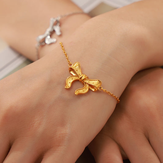 B廠【E055】韓版時尚優雅ins風首飾套裝女鈦鋼鍍18k金蝴蝶結氣質手鍊耳環 24.06-3