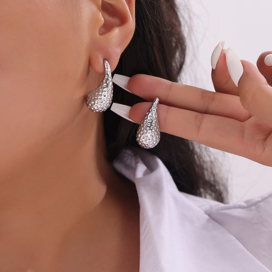 B廠【F1457】新款歐美ins捶打紋波點水滴耳墜18K金色鈦鋼耳環不褪色飾品女 24.05-5