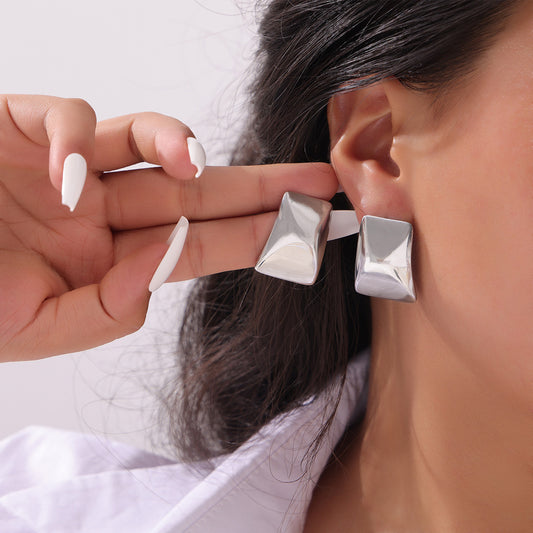 B廠【F1559】夏季潮流誇張個性幾何方形褶皺紋理耳環小眾設計鈦鋼鍍18k金耳飾 24.05-5
