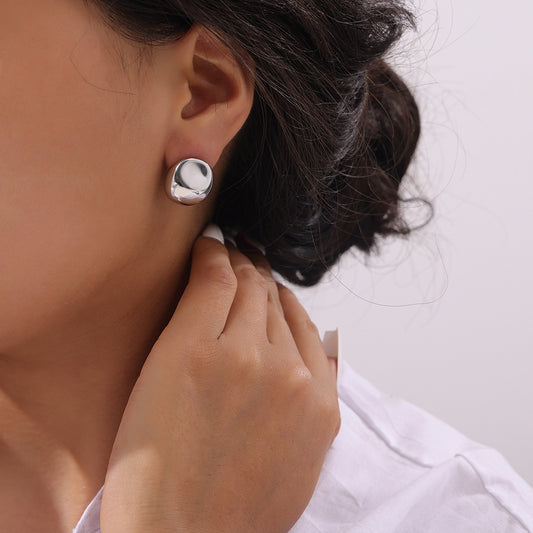 B廠【F1445】歐美不規則光面圓形耳環女ins冷淡風簡約百搭耳環時尚鈦鋼耳飾女 24.05-5