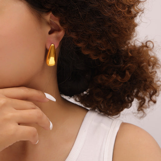 B廠【F1446】歐美設計感胖乎乎水滴耳環女INS風鈦鋼輕奢時尚百搭氣質光面耳環 24.05-5