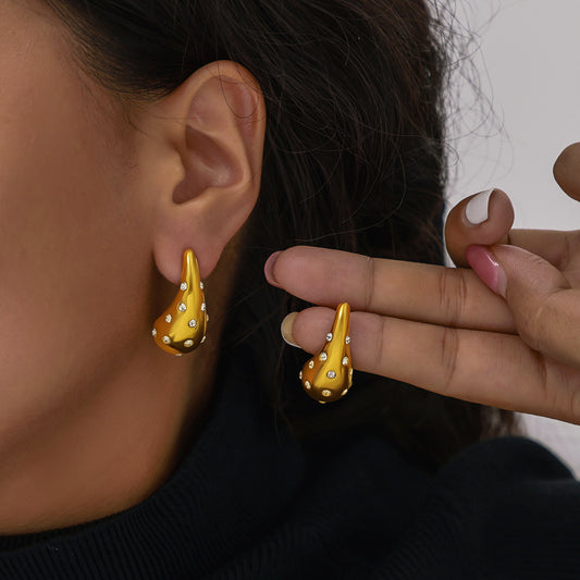 B廠【F1238-9】歐美時尚輕奢風誇張耳環鑲鑽水滴形耳環鈦鋼鍍18K金個性設計耳環 24.04-3