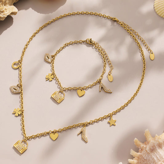 B廠【TXP384】跨境新款8字愛心5A鋯石鎖骨項鍊手鍊手鍊套裝不銹鋼材質不掉色 25.09-2