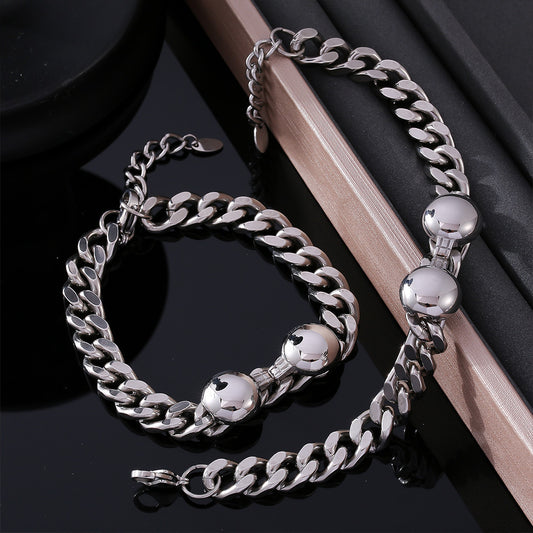 B廠【NP005】chic歐美時尚個性不鏽鋼簡約質感項鍊手鍊輕奢感飾鏈套裝 24.08-3