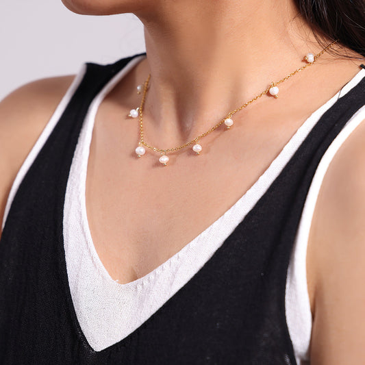 B廠【P008】法式跨國新款淡水珍珠項鍊ins風簡約甜美鈦鋼鍍18k真金鎖骨項鍊女 24.08-3