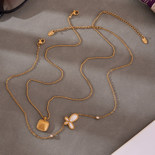 B廠【P1054】歐美飾品不鏽鋼蝴蝶造型項鍊方形光面吊墜18k鍍真金不掉色 25.09-2