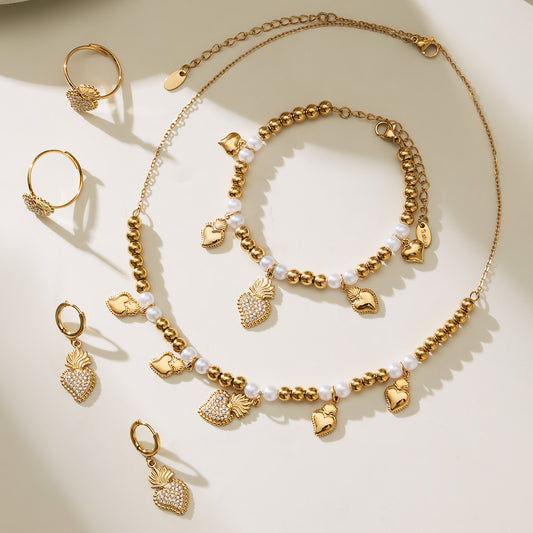B廠【TXP490】5A鋯石愛心皇冠吊墜項鍊耳環手鍊戒指組不銹鋼鍍18k真金 25.11-4