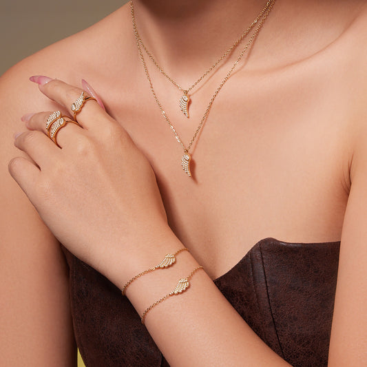 B廠【TXP486】超閃5A鋯石小翅膀造型手鍊項鍊耳環戒指組不鏽鋼鍍18k金 25.11-4