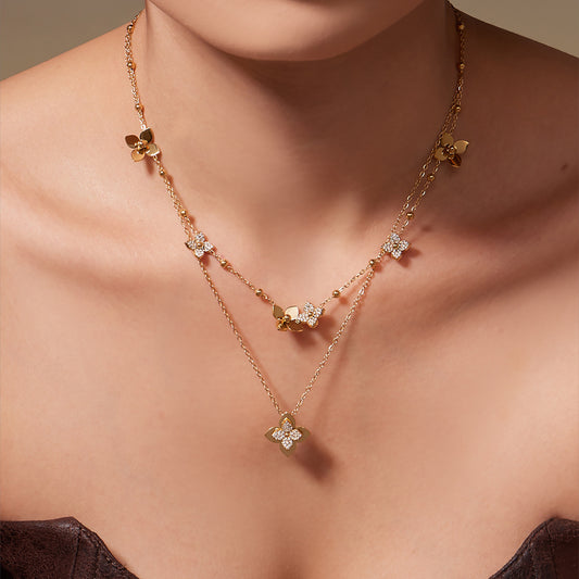 B廠【TXP489】熱銷新品重十字夾珠鬱金香花朵鑲鋯石滿鑽鎖骨項鍊戒指套裝 25.11-4