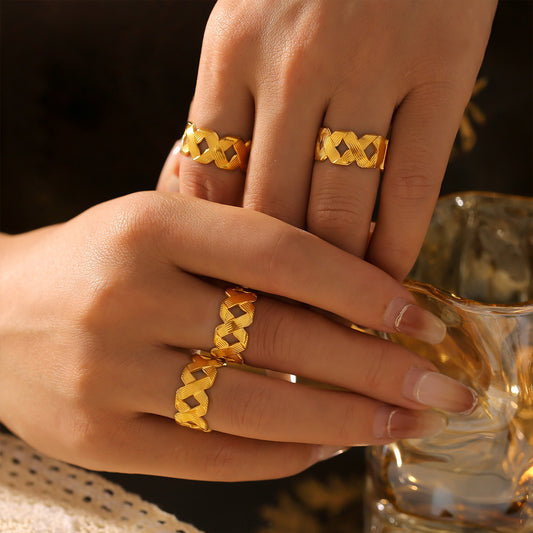 B廠【A632】法式設計感纏繞鏤空交叉線戒指 鈦鋼電鍍18k金指環冷淡風手飾品 24.08-3